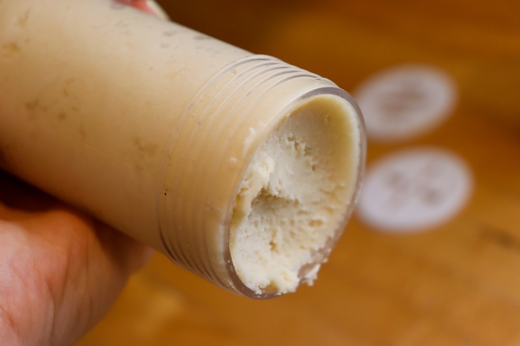 - When you are filling the cookie press, be sure to really squish the dough in there, squeezing out any bubbles that you can.
