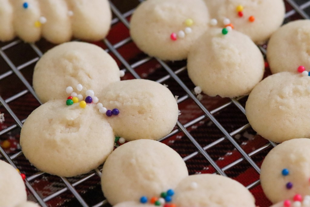 Many people ask “What’s the difference between a short bread cookie and a spritz cookie?” well the short answer is; an egg. This one ingredient helps hold the cookie in its form so it doesn’t crumble easily like a shortbread cookie.