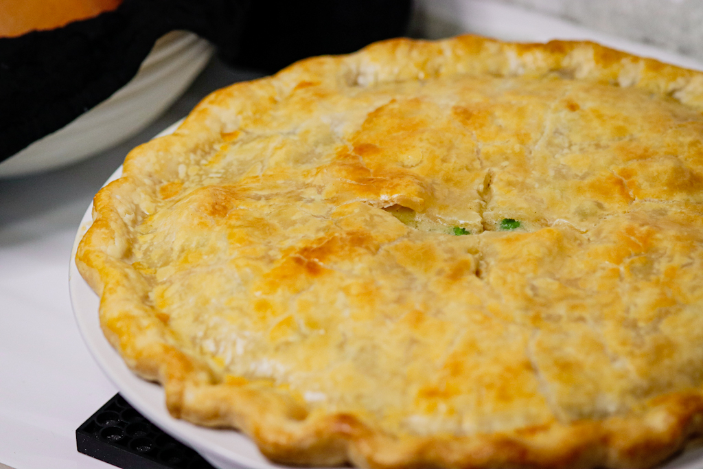 - once cooked, remove the pot pie from the oven and let it cool for 20-30 minutes. this will help set the gravy. if you try to cut it while its hot, the contents may spill out.