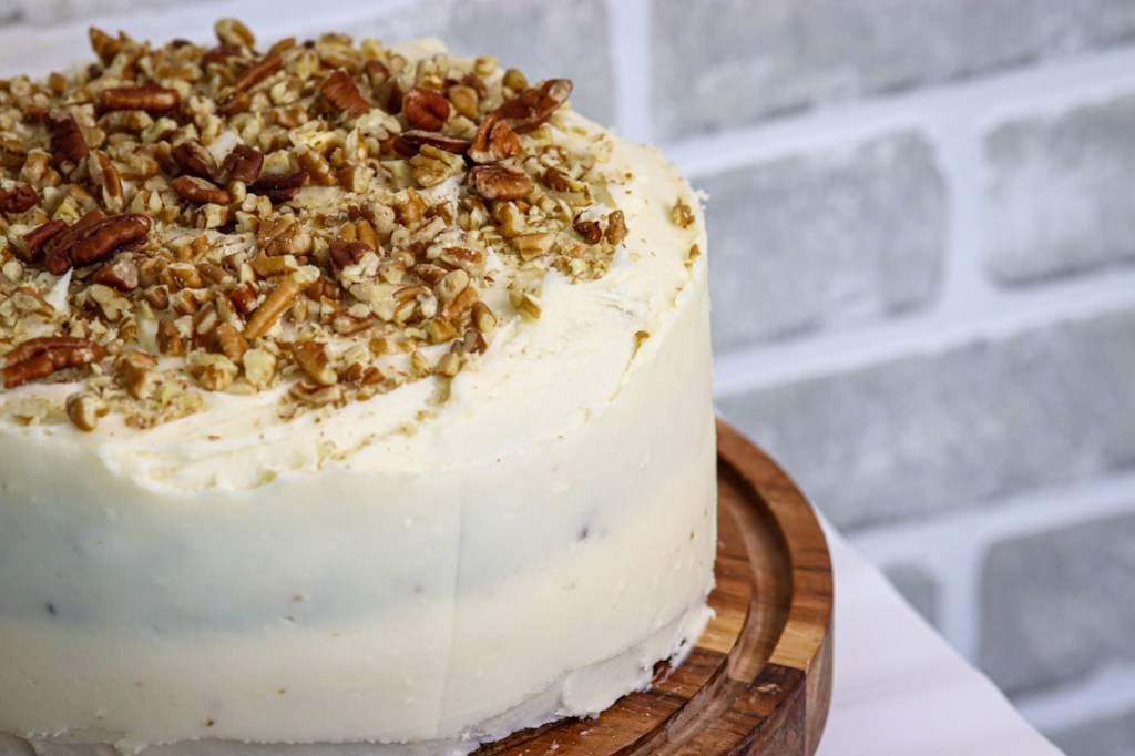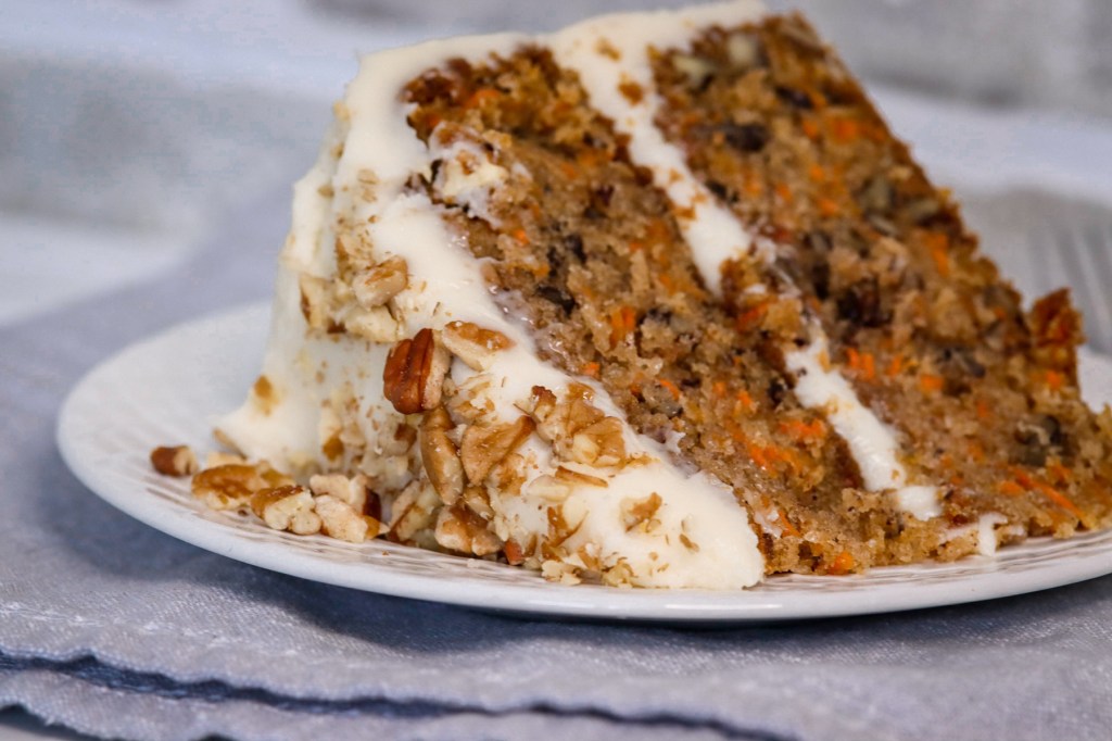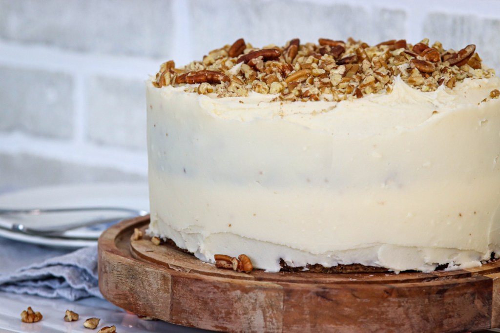 If you are looking for an easy, delicious cake to bring to a dinner party that has a wow factor, this is your cake! This carrot cake is moist, bursting with warm flavors and topped with a classic cream cheese frosting. Adding pecans into this cake takes it to another level.