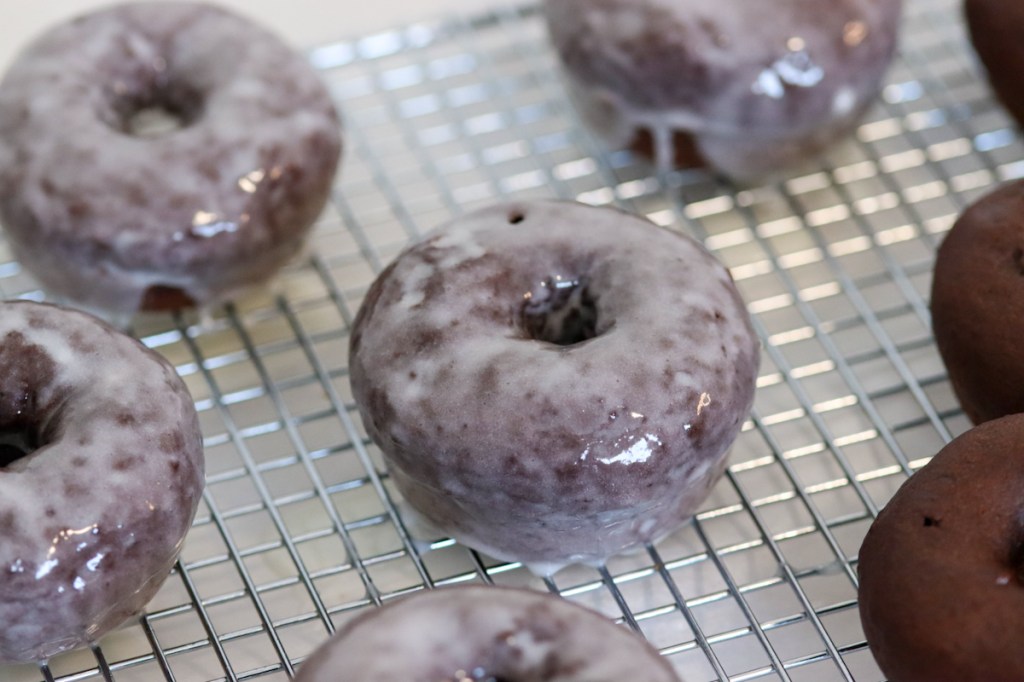 - Dip the donuts into the glaze and set back down on wire rack until glaze hardens.