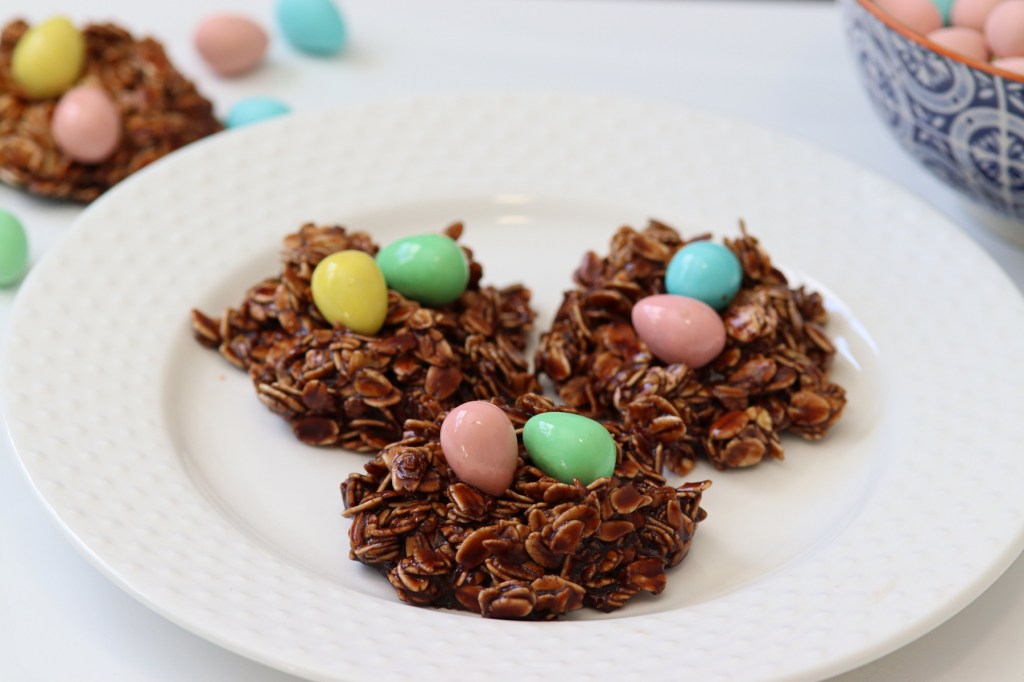 Cadbury mini eggs are my favourite Easter treat this time of the year. So naturally, I try to incorporate them into everything! These chewy, sticky no bake cookies are the perfect candidate to make mini egg nests. The best part is, they come together in less than 20 minutes which makes these no-bake Cadbury nest cookies are an absolute must this Easter.