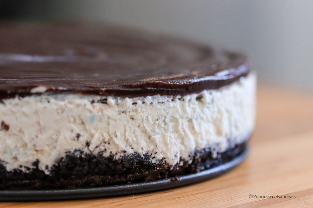 - The first thing you want to do is make your cookie crumb base. I used Oreo cookie crumbs as I wanted a chocolate base, but graham crumbs would also work really well. In a small bowl, combing the Oreo cookie crumbs and melted butter until evenly moistened. (You may need to add in another tsp of melted butter) press the cookie crumb base into the bottom of a lightly greased 9″ spring foam pan. Set that aside in the freezer.