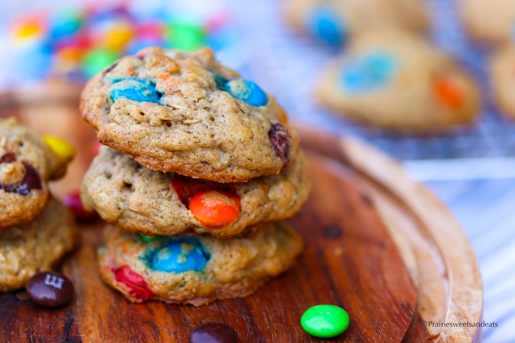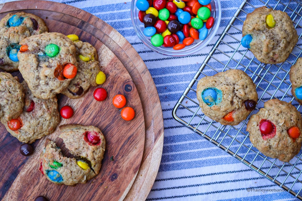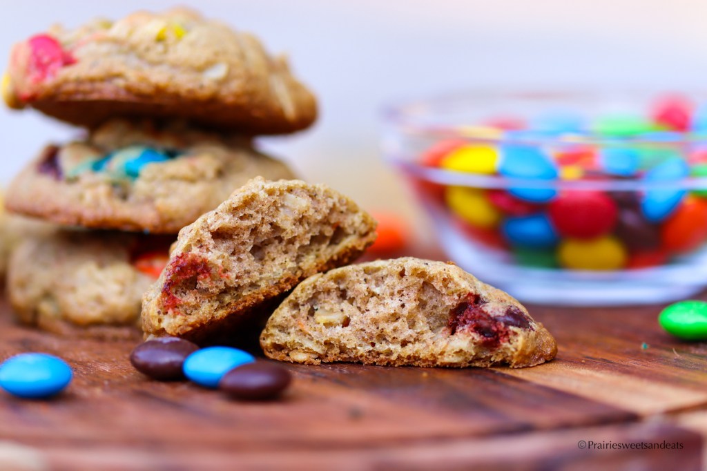 There are few things in life as satisfying as popping a handful of M&M pieces in your mouth! Am I right? well okay maybe one thing… these cookies! I’m not sure if its the bright colors or the fact that they are baked into a soft, chewy, deliciously spiced cookie that has me swooning over them.